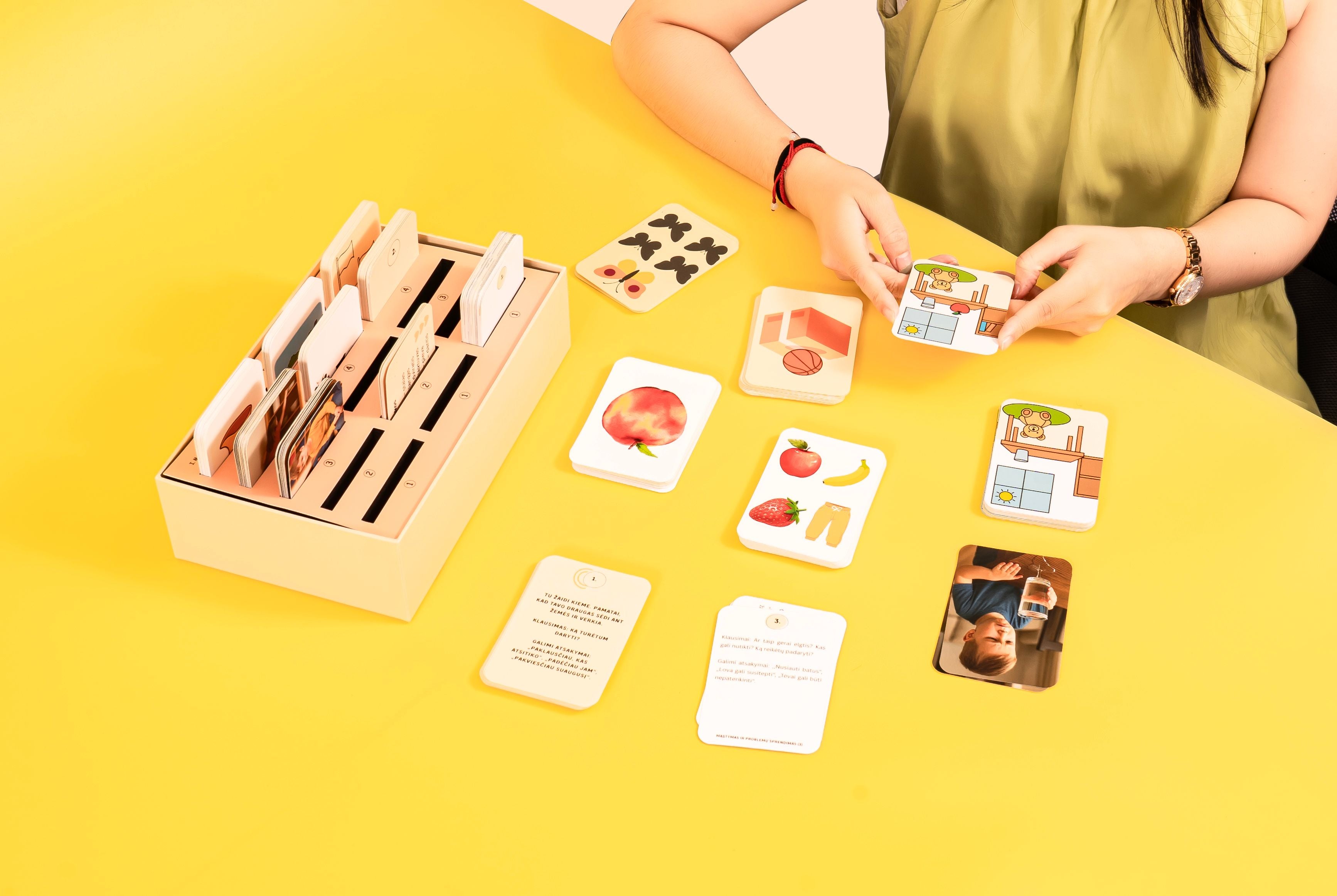 „Augame Jausdami“ gimė iš šio poreikio – tai dėžutė, kurią kūriau galvodama apie realias vaikų kasdienes situacijas ir tėvų klausimus: kaip padėti vaikui atpažinti jausmus, nusiraminti, susikaupti, priimti sprendimus. Noriu, kad ši priemonė padėtų šeimoms kurti daugiau supratimo, švelnumo ir pasitikėjimo vieni kitais jų kasdienybėje.